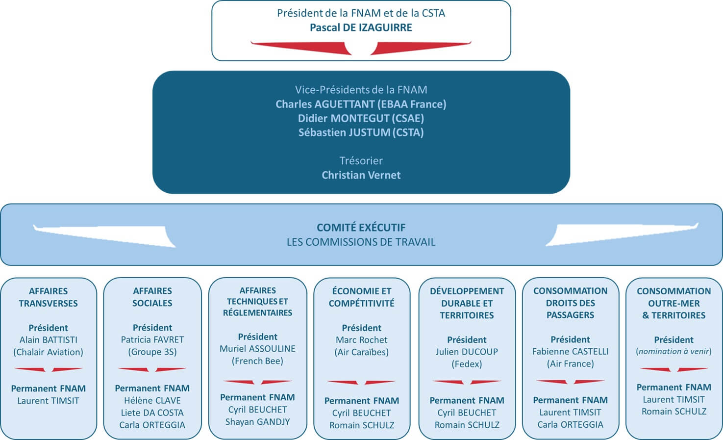 La commission affaires transverses se réunit en tant que de besoin. Elle est présidée par Alain Battisti (Président de Chalair Aviation)
